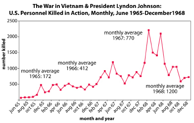 Examine the graph shown. The information on the graph provides the evidence the American public needed to pressure the American government to withdraw armed forces from Vietnam. The number of casualties was increasing. Why should the American people continue to support a war they were not winning?