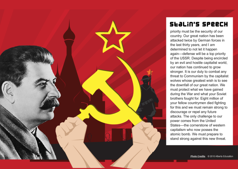 In 1945, once Germany—the common enemy—had been defeated, old tensions between communist and democratic countries resurfaced. The Soviet Union began pursuing expansionist policies. The United States and its allies had a new reason to fear for international peace and security. Would the Soviet Union replace Hitler’s regime by conquering new land and creating fear in Europe? What were Stalin’s plans, and how would the United States and its allies react to those plans?