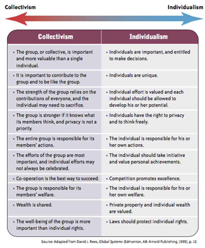 You now have a basic understanding of collectivist and individualist value systems and how they have been integrated into various ideologies. As you work through the course, you will further your understanding of how these ideologies have originated and how they have evolved.