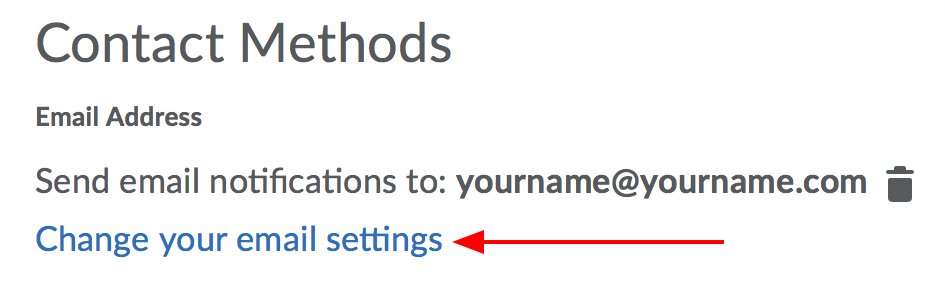 In this example, the student is signed up to receive email notifications for Discussions.
